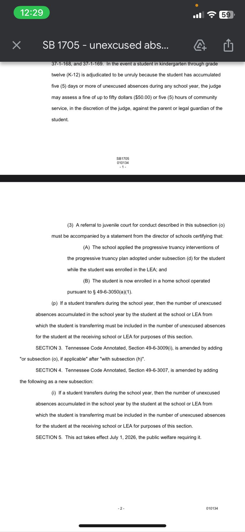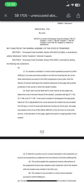 All laws currently regulating homeschooling and private schools in Tennessee are unconstitutional and need to be repealed. We do not need more. We have already been involved in court cases in which the constitutional rights of parents have been violated regarding their rights to homeschool in Tn. That was never addressed by the legislature even though we worked with Senator Bowling on that issue. Currently in Tennessee, a parent can enroll their child in a homeschool option at any time. This bill is giving the courts permission to deny a parent’s constitutional right to homeschool. We need to be advocating for MORE freedom and for constitutional rights to be recognized.