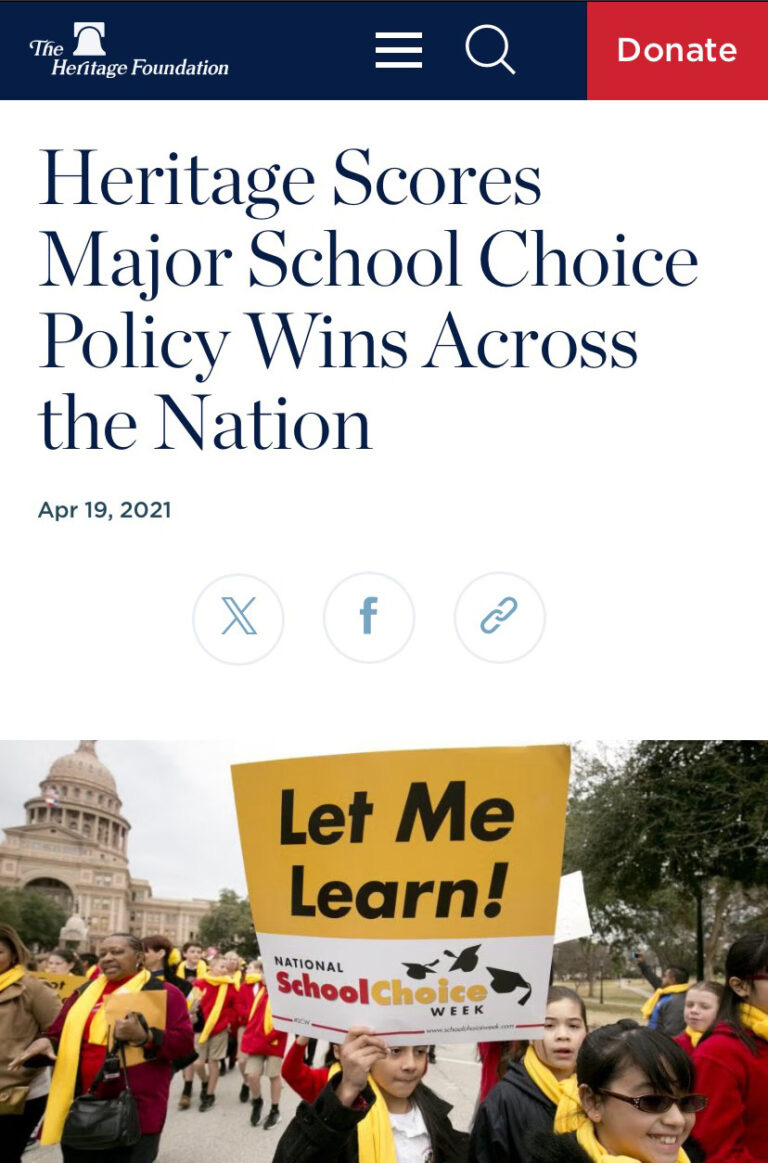 The Heritage Foundation has a page on its website asking for donations to help the nonprofit expand school choice. It is worth noting that The Heritage Foundation has received funding from the Charles Koch Foundation and the Charles Koch Institute.